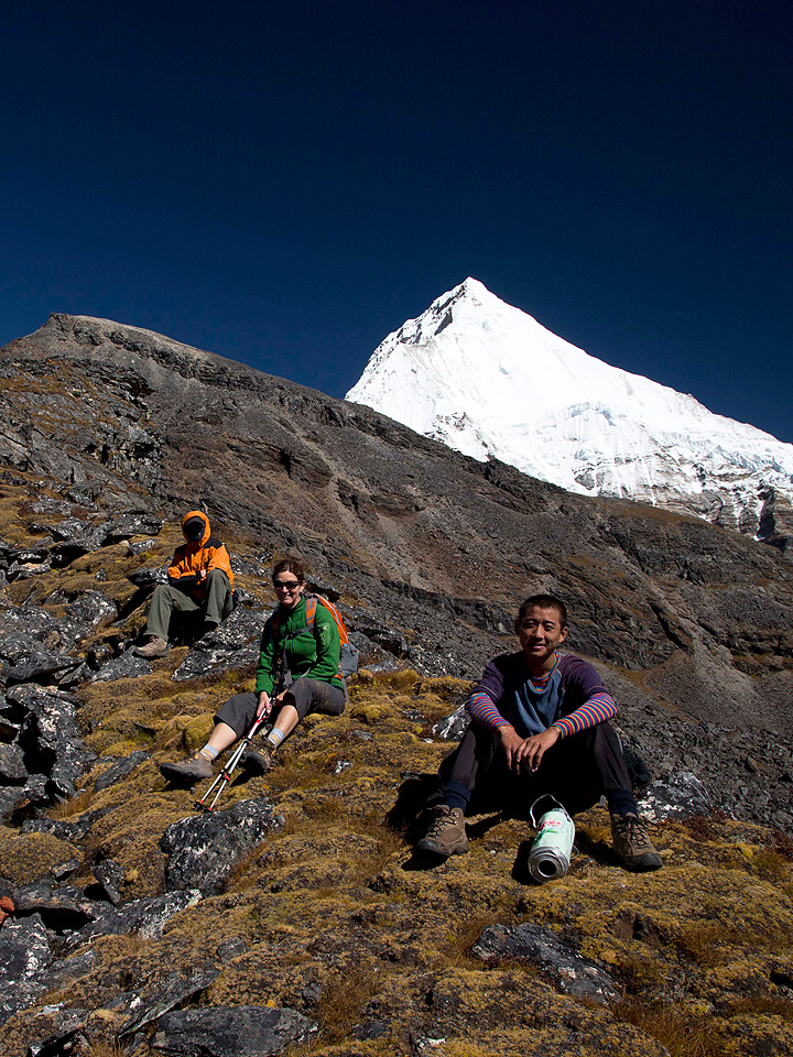 Alternatively, a 2 hour hike to a lake above camp provides a stunning location for photographs of Jitchu Drake. Green grass, grazing yaks, stunning mountain scenery – it doesn’t come much better than this. For a spectacular view of Jitchu Drake closer to camp (even better at sunrise if you can get up sufficiently early), follow the river for 20 minutes to a lone house and here the mountain is presented before you.