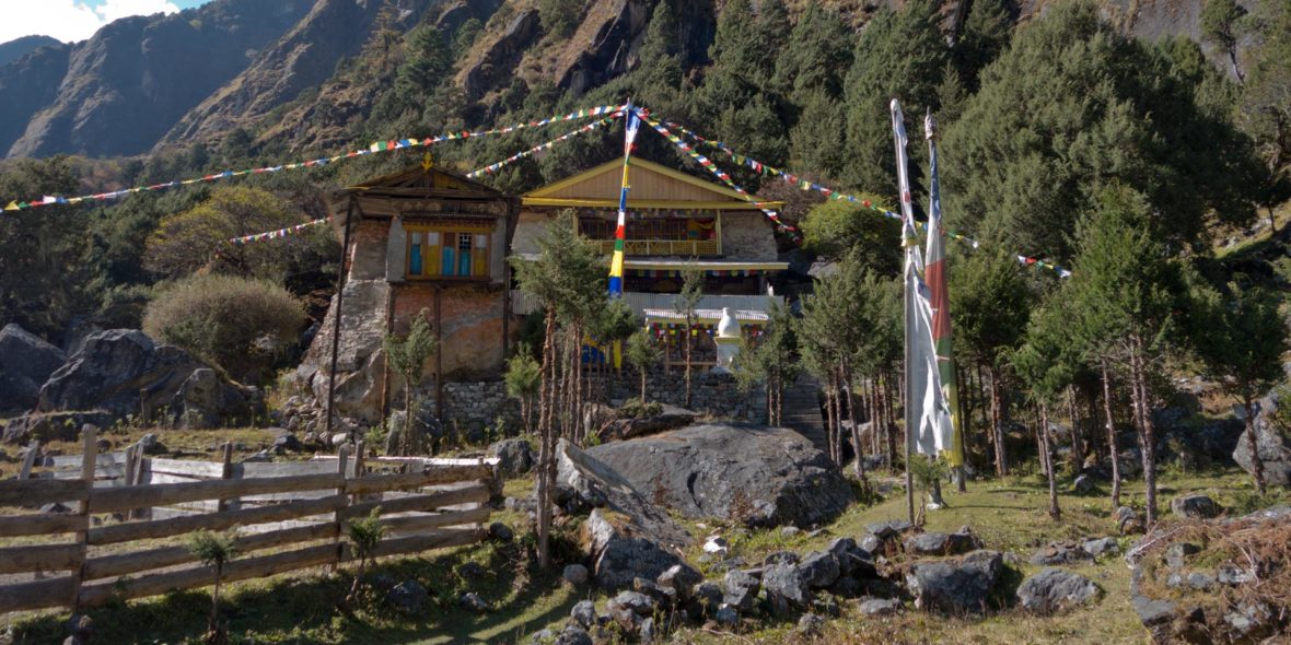 Today we start with a short ascent to a little ridge above Amjolosa, we trek through lush bamboo, oak and rhododendron forests. We then descend to the Ghunsa Khola (river), trek past waterfalls and pasture lands. The trail is again undulating, and we keep climbing on a more challenging trail. We pass a lovely waterfall, with the river far below us, and soon reach the beautiful Sherpa village of Gyabla. There is an an old monastery and some ancient Buddhist chortens here. We stay in a comfortable tea house here and can spend the afternoon exploring the village some distance above the tea house.