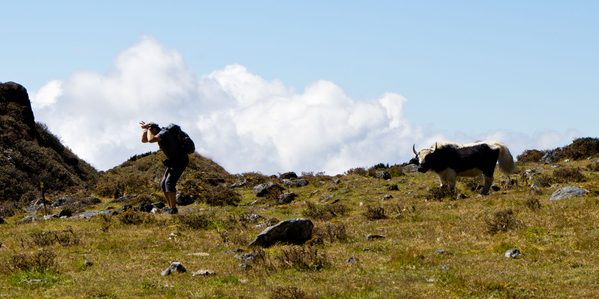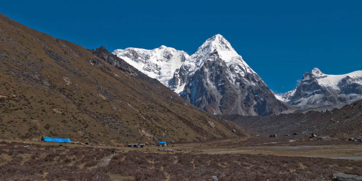 We transition from the taller alpine shrubs of azalea, juniper and rhododendron around Kambachen to the truly alpine and at Lhonak there is only grass, tussock and dwarf rhododendrons. The lodges also reflect this simplicity and are much more on the basic side although the are being updated. It is going to take considerable investment to make comfortable lodges up here in this extreme environment. There are amazing views of Kirat Chuli, Nepal Peak and Chang Himal among other from Lhonak!