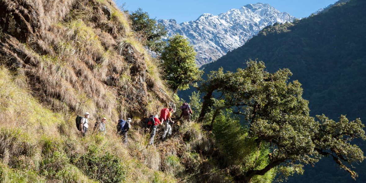 No rush today as we are descending all the way. We start from Ramche mid morning and descend along the Yalung moraine, back down to the forest above Tseram where we will stop for lunch. After lunch we continue descending through delightful sections of thick primary forest to the couple of lodges at Torangden, which has various spellings. At Andaphedi, look back as it will be your last chance for a view of Kabru before descend into the stunning rhododendron forests.