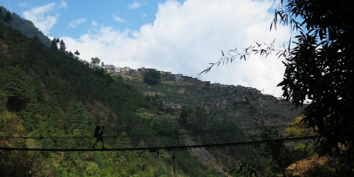 We continue retracing our steps down the valley, enjoying the glorious forested hills of Nepal. A little way after passing Hot Spring Hotel, we turn off the main trail and start climbing again. We will climb up to Thulo Saybru, a big village that sits high on the hill overlooking the valley we have just come from. Here we will spend the night in another lovely tea house.