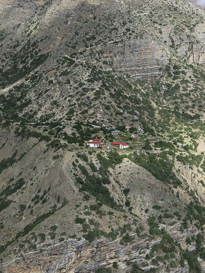 Today starts with a descent as we retrace our steps back towards Meta. Just before we reach the village, we take a right towards the monastery of Nar Phedi. Make sure you have your cameras handy when we cross a bridge over a deep, contoured and narrow gorge. It is worthwhile to spend some time on the bridge to take pictures and observe the raging river underneath.