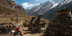 Heading north into hidden Tsum valley, explored half a century ago by David Snellgrove , it is the highlights of the trek. Tsum is a fascinating and magical region of approximately 4000 ethnically Tibetan inhabitants who still maintain strong links with Tibet. The living Buddhist culture is virtually untouched because of their remote location and wildlife abounds. Tsum is a green and fertile valley of tightly packed, Tibetan-style villages, ancient Tibetan Buddhist gompas and spectacular views of Ganesh and Shringi Himal. We trek high into these valleys, having a chance to approach Ganesh Himal and camp with the lively nuns at the spectacularly-set Gompa Lungdang.