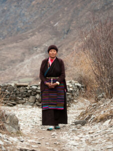 Passing the small shop, we continue to climb on a good trail for another few hours to reach Chhokangparo, where we’ll stop and stay at a homestay for the night. This is one of our favorite villages in the Tsum valley, a scenic and interesting village with friendly villagers and small lanes to explore. There’s a well-stocked shop in town and a local phone, and a home-stay sort of lodge owned by the same couple. The kids are eager to come and play so save some energy. We might have the chance to visit Tashi (of Tsum Valley Homestay)’s mother in their modest Tibetan home for a cup of salt-butter tea, and perhaps we’ll also visit another English-speaking friend, Namgyal, at his much nicer and lighter house. There is lots of weaving happening in this village as in most others in Tsum and Manaslu, and perhaps an opportunity to purchase a hook rug or other textile if you’re interested. The intricate, colorful woven belts adorning most women’s Tibetan-style chubas are unique to the Tsum valley as well.