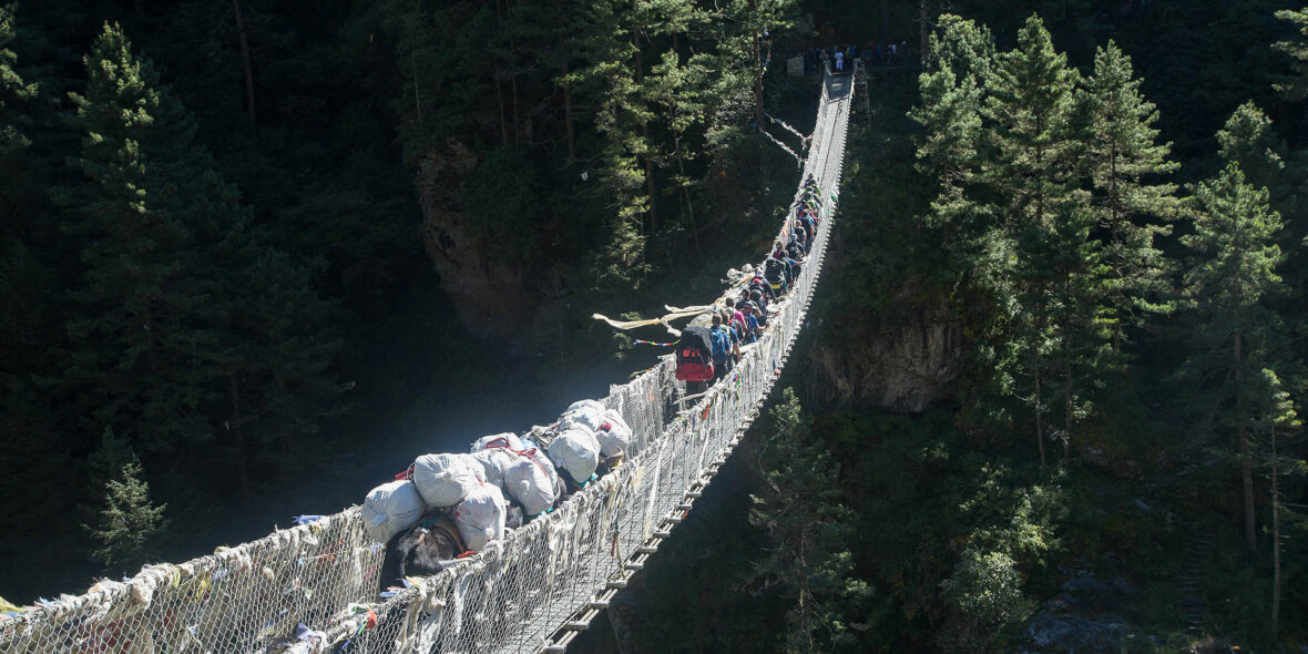 Mostly downhill today following the fall of the Dudh Kosi River, but there’s a sting in the tail as we make the final short climb to our lodge accommodation in Lukla.