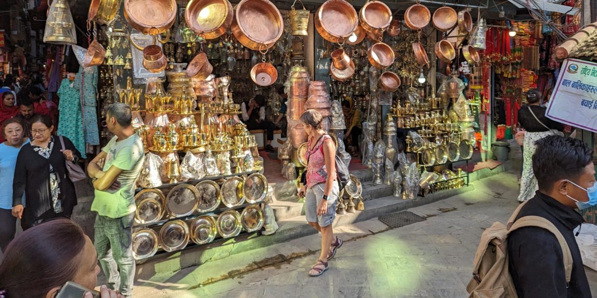 In the afternoon we head out on a walking tour of the city’s vibrant, ancient bazaar. Explore the secret alleys and courtyards of old Kathmandu, dotted with Buddhist stupas and Hindu temples. You’re sure to be dazzled by the lines of tiny stalls selling fruit and vegetables, spices, fabric, brass kitchenware, and so much more.
