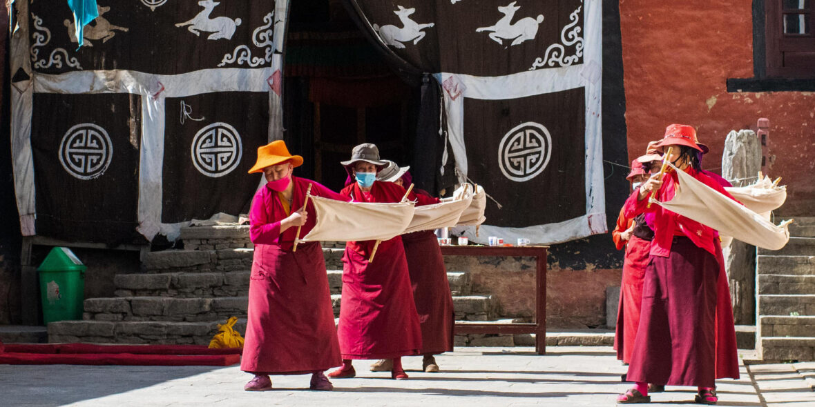Today we head up the lovely valley northwards to Thubten Choling, one of the largest Tibetan resettlements in Nepal. The large monastery here was established by the highly esteemed Trulsik Rinpoche, who fled from the Rongbuk Monastery in Tibet in the 1950s. As one of the few remaining high lamas who was born and educated in Tibet, Trulsik Rinpoche is of immense importance to Buddhism, in particular, the Nyingma sect to which he and the Thuptencholing Monastery belong.
